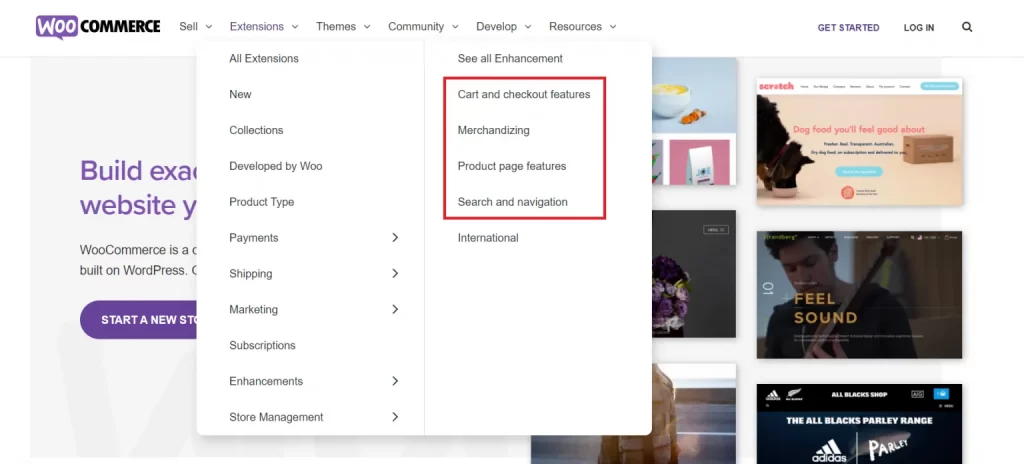 O WooCommerce oferece opções gratuitas e pagas, custando até US$200 por ano, e você pode utilizá-las de forma estratégica para aprimorar as funções da sua loja. Para facilitar o entendimento, apresento abaixo algumas categorias disponíveis na WooCommerce Extensions Store: